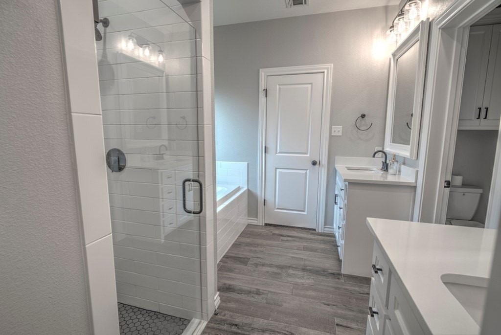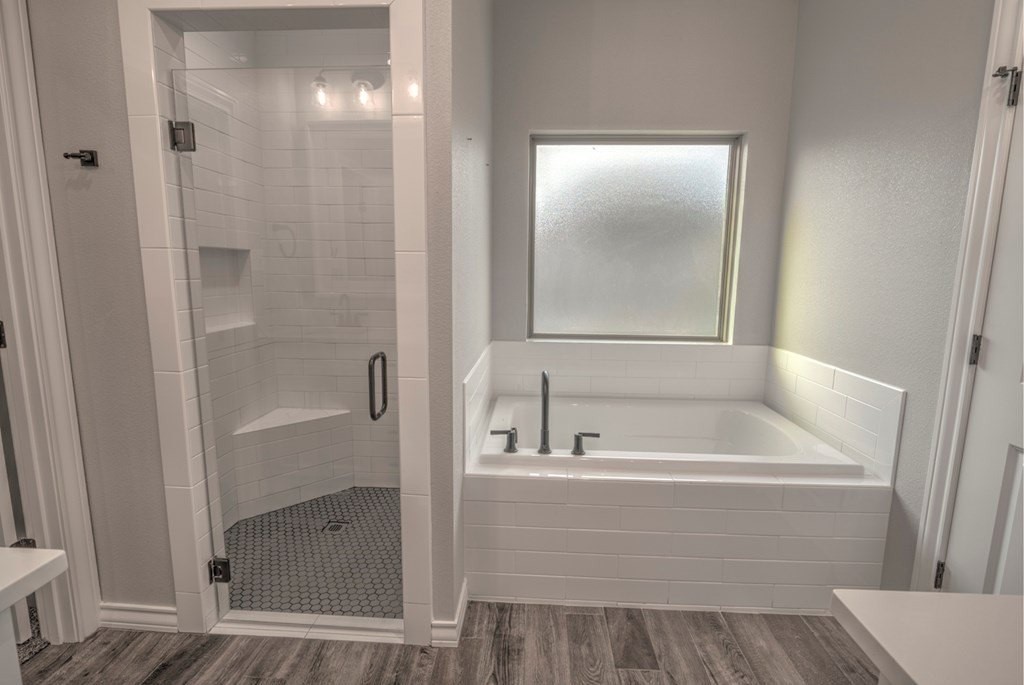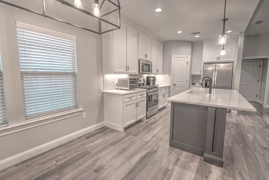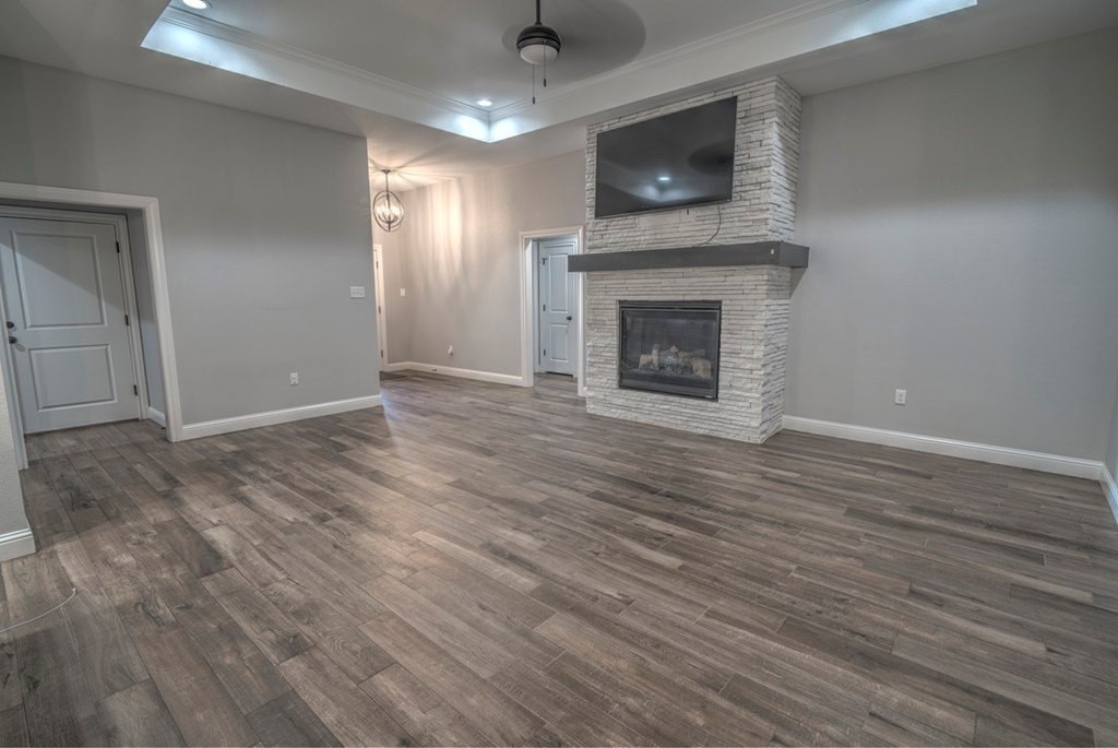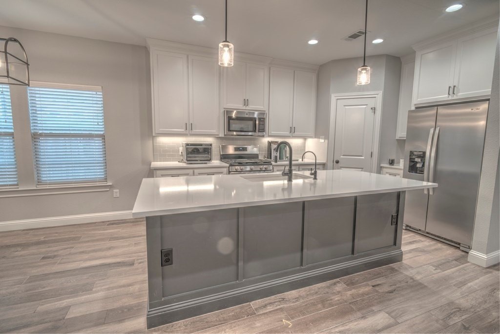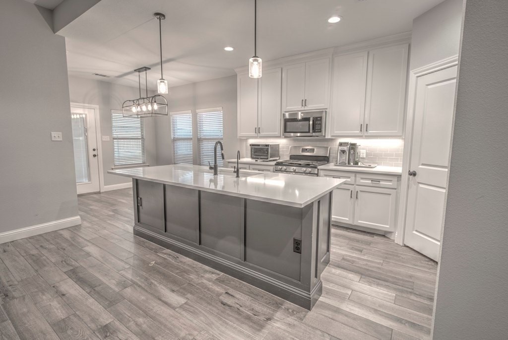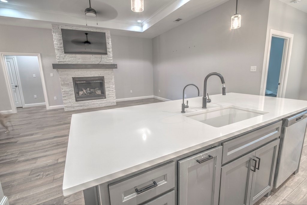 Built in 2022, this stunning 3BR/2BA home blends modern style with comfort. Inside, you'll find wood-look tile flooring, sleek quartz countertops, and an open living concept highlighted by a stone-accent gas fireplace. The sequestered master suite offers a peaceful retreat with dual vanities, a relaxing soaking tub, and a spacious walk-in tiled shower. Enjoy a low-maintenance turf front yard and a beautifully landscaped backyard complete with a covered patioperfect for outdoor living. Additional conveniences include a Tesla charging station, making this home as functional as it is beautiful.